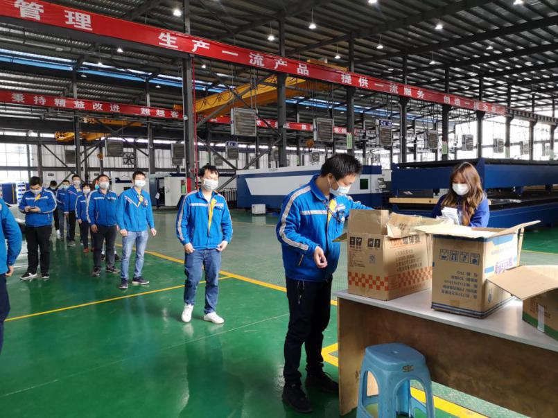 大族激光智能裝備集團管理層毫不懈怠、科學部署防控工作與經營戰(zhàn)略,創(chuàng)新工作方式,全力支持防控的企業(yè),為徐工集團、中集集團、宇通客車等工程機械、特種車、醫(yī)療器械行業(yè)企業(yè)客戶,以及口罩機生產企業(yè),提供光纖激光切割機、激光切管機、激光焊接系統(tǒng)與自動化生產線等高端激光裝備系統(tǒng)解決方案與增值服務。大族激光緊密關注疫情防控,針對急缺的口罩等情況,組織研制N95口罩生產線,基于先進的焊接與自動化技術,實現(xiàn)穩(wěn)定生產、快速交付,確保物資供應。