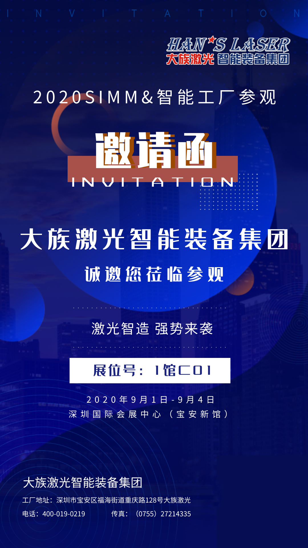 金秋九月,秋風(fēng)颯爽。ITES深圳國際工業(yè)制造技術(shù)展覽會(第21屆SIMM深圳國際機(jī)械制造工業(yè)展覽會),將于2020年9月1-4日在深圳國際會展中心(寶安新館)舉行,大族激光智能裝備集團(tuán)攜激光智能制造系統(tǒng)解決方案亮相,展位號1館C01;同期,舉辦大族激光智能工廠開放活動,期待您的蒞臨參觀!...