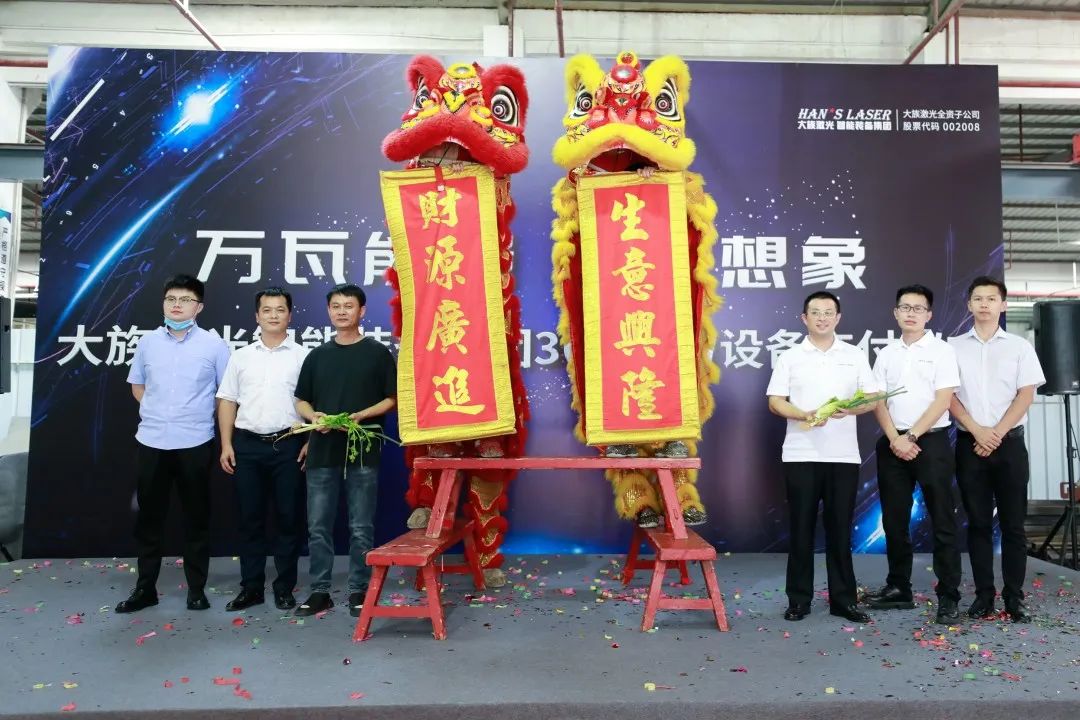 深圳市洪昊金屬科技有限公司總經理黃國洪,大族激光智能裝備集團粵東區(qū)域總監(jiān)何國培,大族激光智能裝備集團粵東區(qū)域銷售經理郭盛龍等相關領導、嘉賓共同見證這一激動人心的時刻。