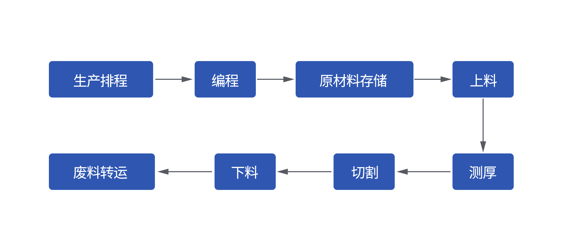 從生產(chǎn)排程、編程、原材料存儲(chǔ)、上料、測(cè)厚、切割、下料到廢料轉(zhuǎn)運(yùn),支持全自動(dòng)化生產(chǎn)。