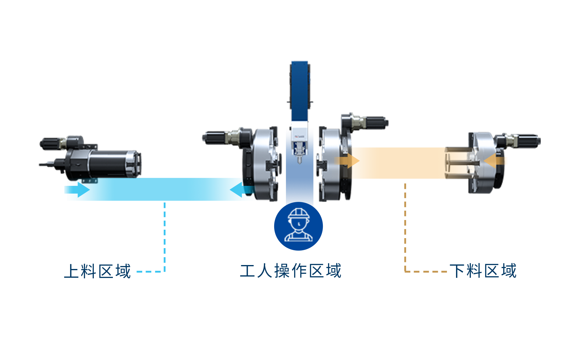 兩卡盤夾持下料,可在行程范圍內(nèi)任意區(qū)域下料,